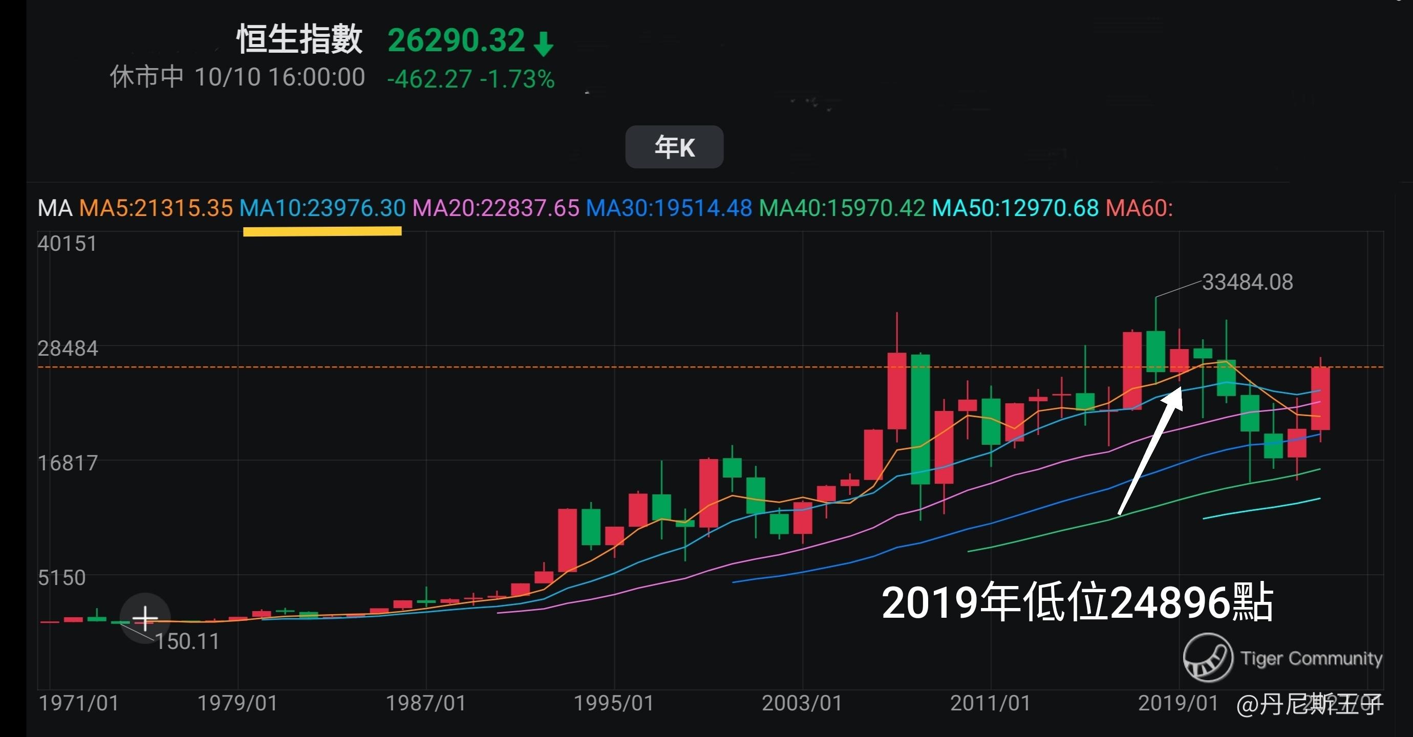 运用恒生指数年线图分析走势: