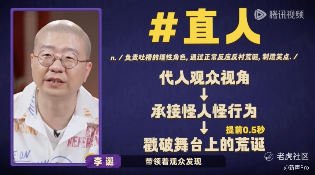 这个看起来颇有些「抽象」的节目,就这样出了圈。而单纯把这种走红理解为「抽象歌舞」也是片面的,张兴朝和李嘉诚「梦到那句说哪句」的演法足够怪诞,而不少网友也发现了张呈的进步。回过头看,在《技能五子棋》舞台结束后,节目用近两分半钟的时间讲解了在这个作品中「直人」和「怪人」所担当的舞台职能。这些介绍,降低了观看的门槛,帮助观众理解整个舞台「怪诞」背后严密的设计逻辑,怪异的表演如何与精准的吐槽互相配合,进一步推动了节目走向大众。