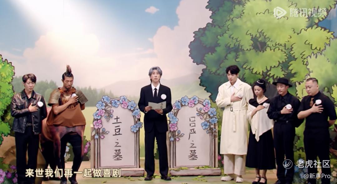 在《喜人奇妙夜》系列节目中,演员也在思考从内容上去解构、打破大家的固有认知,带来更创新的内容。上一季是用《小品的世界》打破第四面墙,把春晚小品的经典套路变成了喜剧里的包袱,让小品里的角色开始思考自己的生活,对大众积累已久的情绪作出回应。而在最新一期节目里,胖达人3还策划了一场「葬礼」,解构漫才搭配,通过直人与怪人身份切换以及「死了还要演喜剧」的剧情里,表达对喜剧的思考和热爱。李诞的总结是,「这是写给喜剧的遗书。」