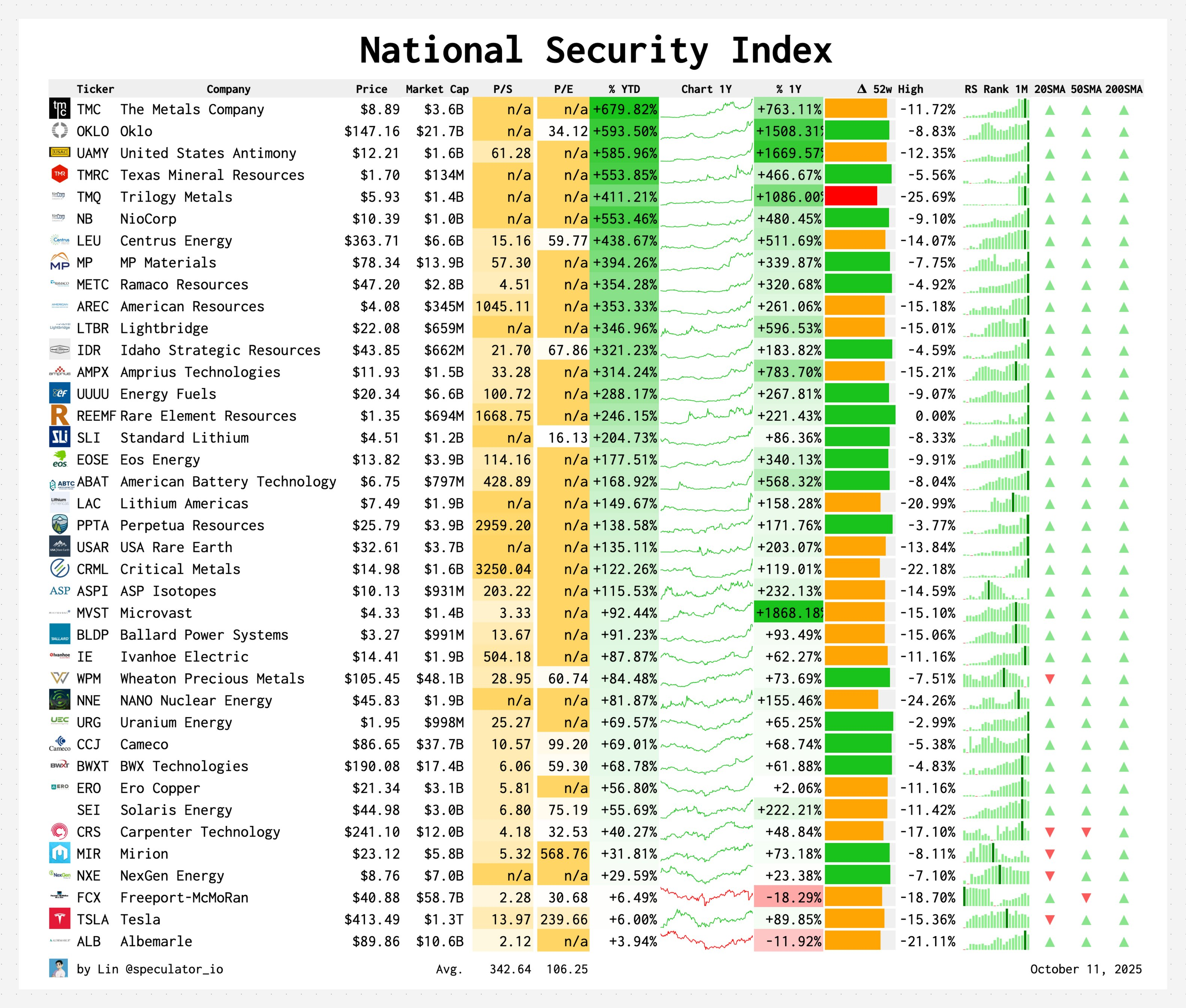 eg.稀土板块的 $The Metals Company(TMC)$ , $United States Antimony Corp(UAMY)$ , $Texas Mineral Resources Corp.(TMRC)$ , $Trilogy Metals Inc.(TMQ)$ 等,涨幅都超过了400%;