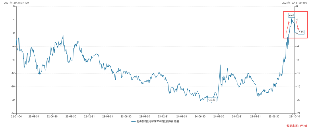如上图所示,成长风格对均衡基准的偏离冲高回落,这暗示我们,机构博弈可能已经从抱团期进入散团期。