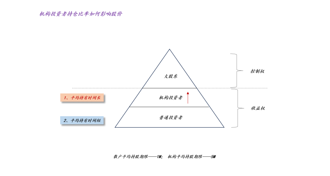 其中,大股东的目标是控制权,他们的持股期限最长,一般不参与交易。所以,股票价格主要反馈机构投资者和普通投资者的筹码游戏。