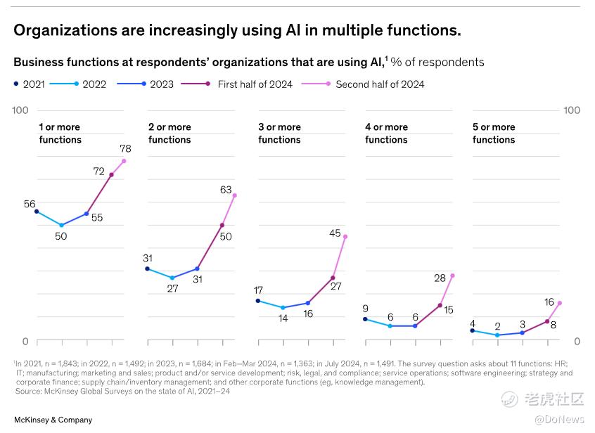麦肯锡报告揭示了当前企业AI应用的两大现状:一方面,应用范围正从单点走向多点,企业平均应用的业务职能已增至3个;但另一方面,超80%的企业坦言,AI尚未对利润产生实质贡献。这清晰地指向了从概念验证到规模价值的“最后一公里”困境。