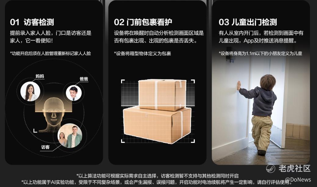 当身份安全得到保障,用户的安全需求自然延伸至“门前场景”。基于此,萤石行业首创个性化“算法商店”,提供“访客识别”“门外包裹看护”“儿童出门检测”等场景化AI服务,使智能锁升级为具备主动感知与预警能力的“门前安全管家”,实现从被动关门到主动安防的跨越。