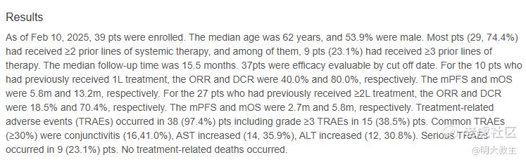 安全性方面,接受过MRG004A治疗的患者中有15名发生了3级(及以上)不良反应,无与药物相关的死亡事件出现。药物相关不良反应多为结膜炎、AST升高、ALT升高,且大多数不良反应经药物对症治疗后可恢复。