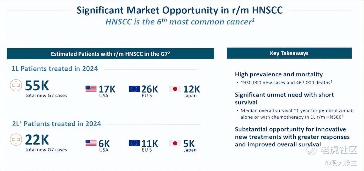 值得注意的是, $Merus B.V.(MRUS)$ 在今年ASCO上披露Petosemtamab(EGFR x LGR5双抗) 联合K药用于一线治疗 PD-L1 阳性复发/转移性头颈鳞癌II期临床数据ORR 63%,12个月OS率79%,mPFS 9个月的数据后,股价当日便大涨32.68%。据最新消息显示,Genmab已与Merus达成交易协议,前者将以80亿美元的交易对价收购Merus的全部股份。而Merus的核心管线就是已进入III期临床Petosemtamab,该药的适应症正是一线/二线头颈癌。这里可以大胆猜测,若MRG003联合疗法在更长的随访时间中仍能取得接近60%的ORR,mPFS等核心疗效数据也能够保持不错的话,乐普生物该管线商业价值将十分可观。