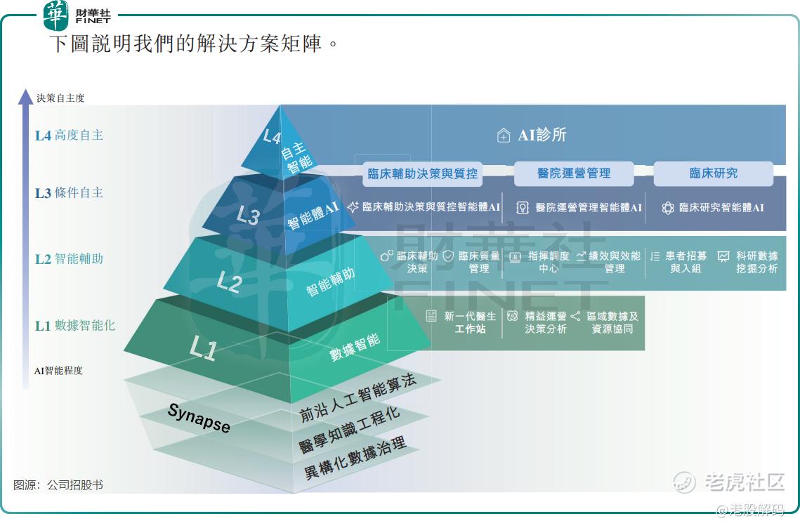资料显示,森亿医疗是全球AI医疗行业唯一涵盖L1至L4级别解决方案的企业,具备贯穿数据基础设施至应用层算法及软件的全栈技术研发能力。