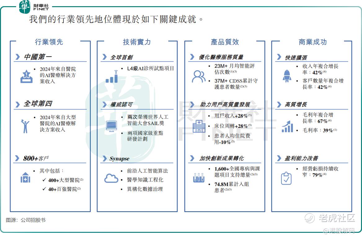 公司产品的核心是Synapse技术底座,该平台融合前沿AI算法研发、医疗专业知识工程及异构数据治理,构建全栈医疗AI能力;此外,公司拥有多场景AI解决方案矩阵,构建了全域AI医疗,解决方案贯穿医院自数据基础设施至应用层算法或软件,完整覆盖临床实践、科研、运营管理等关键场景。