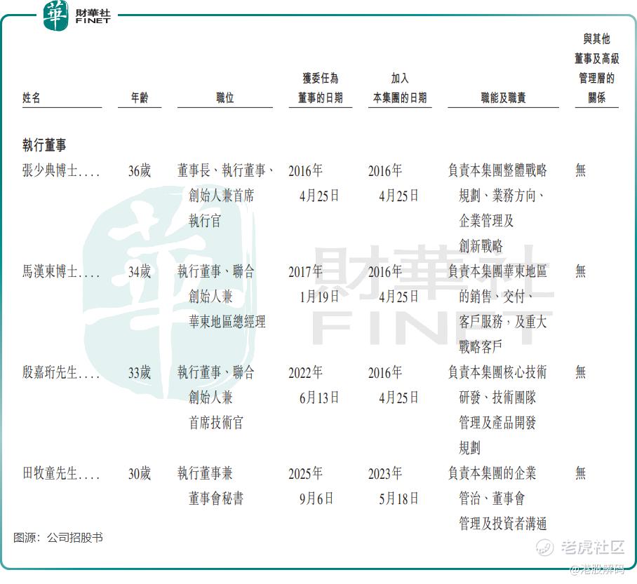 公司创始人、董事长、执行董事兼首席执行官张少典,以及公司联合创始人、执行董事兼华东地区总经理马汉东,两人均拥有博士学位。张少典曾入选《财富》杂志「40位40岁以下商界领袖」及福布斯中国青年海归菁英100人;马汉东曾参与多项国家重大研究项目,并入选2021年胡润U30中国创业领袖榜。