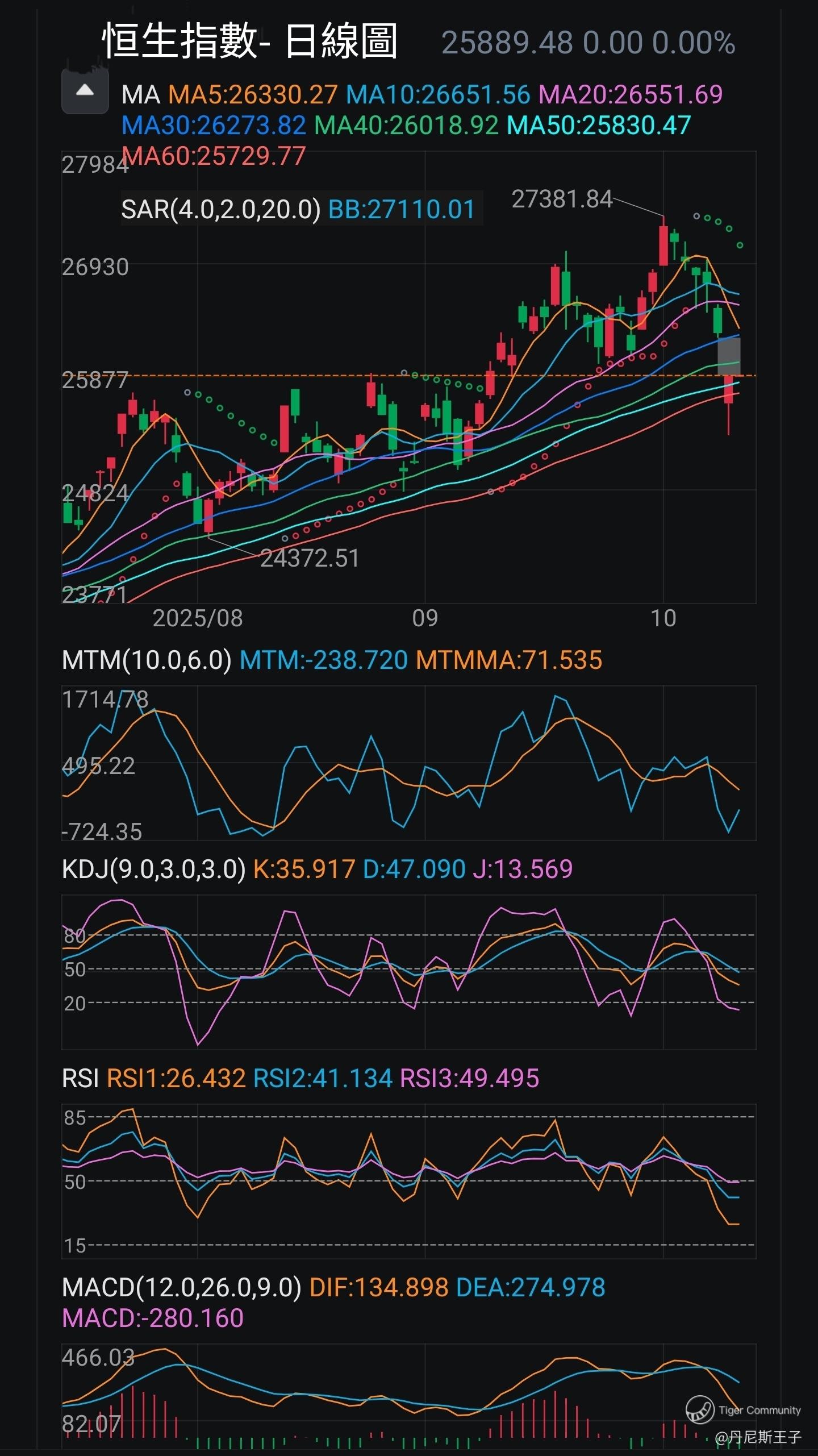 $恒生指数(HSI)$ 收报25889.48点,下跌400.84点,跌幅1.52%