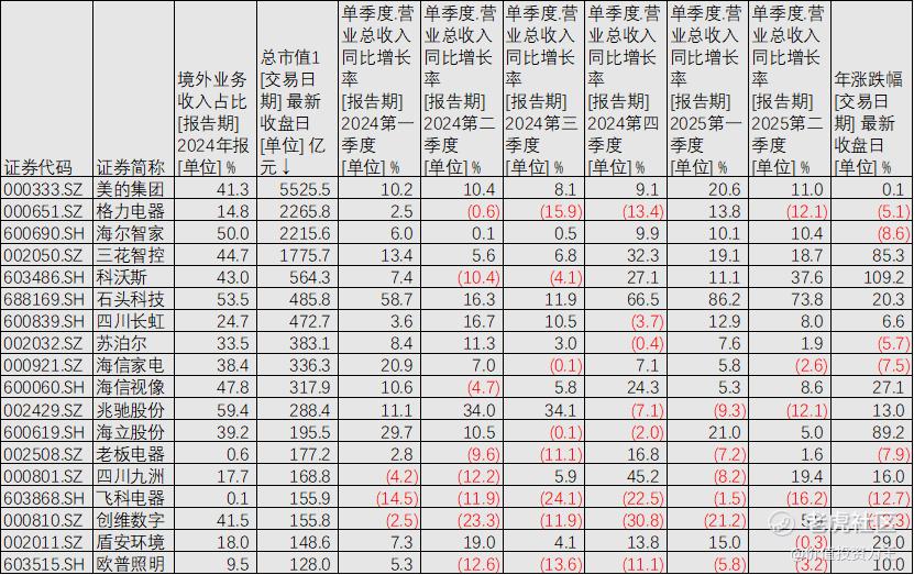 出口占国内家电股的营收比重较高,美的集团为41%、海尔智家为50%、TCL智家73.5%....