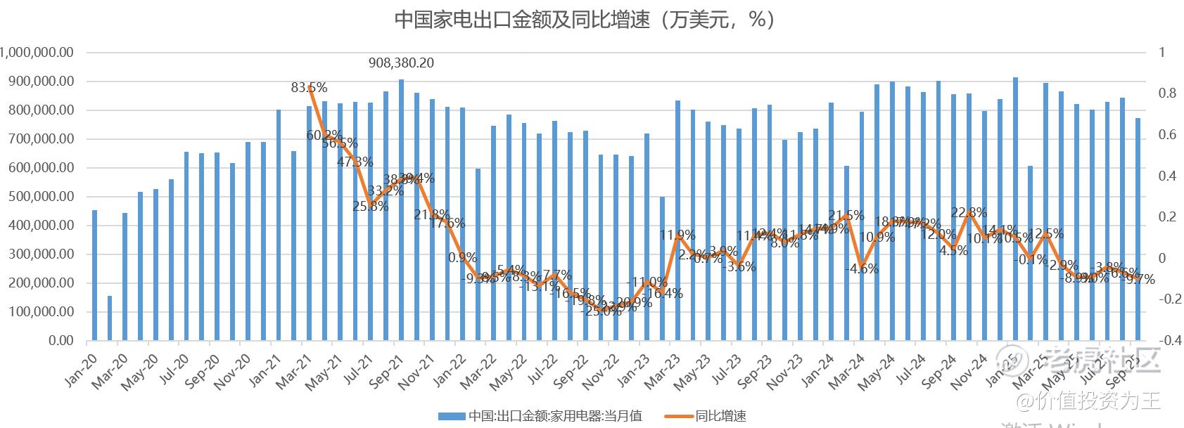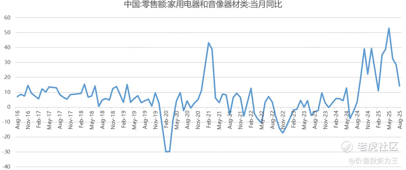 不过令人担忧的是,国家补贴政策始于去年9月,在高基数效应下,国内家电零售额增速可能大幅下滑,从8月增速回落至14.3%来看,已经出现了疲软的苗头。