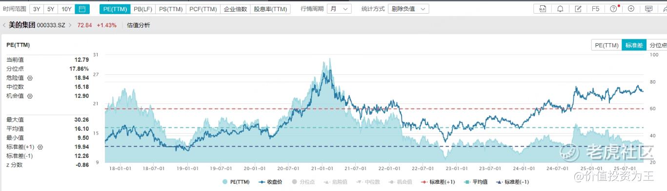 而且从估值上看,家电股的估值并不贵,甚至过于低估,如美的集团的市盈率为12.8倍,为2018年以来较低位置: