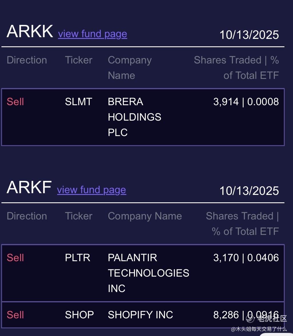 OpenAi点石成金 木头姐卖出6万美元SLMT 卖出55万美元PLTR