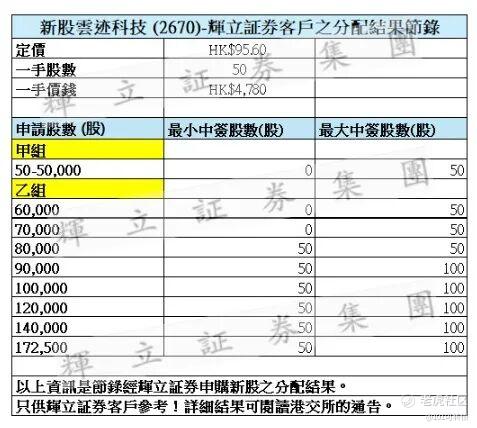 云迹科技(2670)出分配结果了,甲组全员抽奖,乙三稳一手;定价:95.60,一手50股;恭喜中签的老板们!