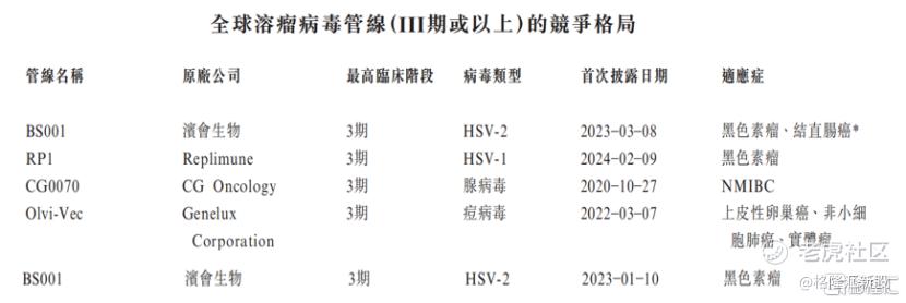 全球溶瘤病毒管线(III期或以上)的竞争格局,来源:招股书