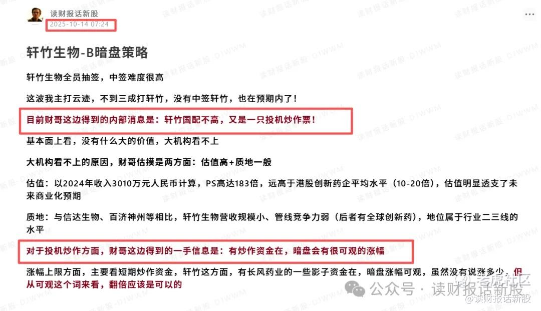 打新私蜜圈中,今早早早就发了轩竹生物的暗盘策略了