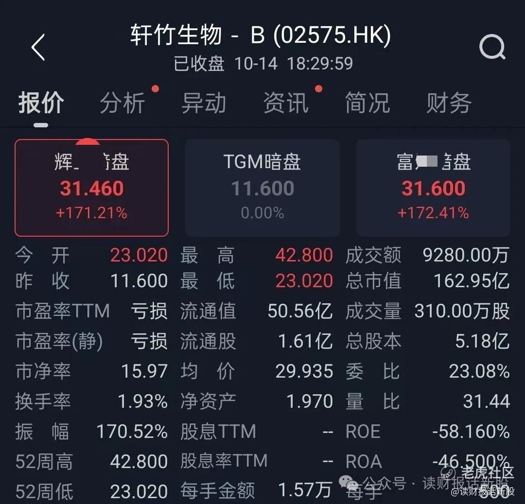 今天是轩竹生物-B $轩竹生物-B(02575)$ 的暗盘,结果两大暗盘双双暴涨170%+,最高一手赚1万左右