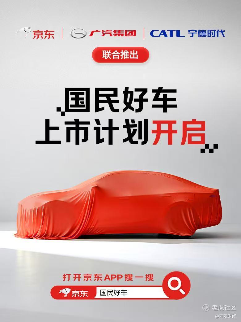 10月14日举办的京东11.11惊喜开放日活动上,京东汽车宣布联合宁德时代旗下的时代电服和广汽集团共同推出一款“国民好车”。很快,“京东造车”话题冲上热搜。