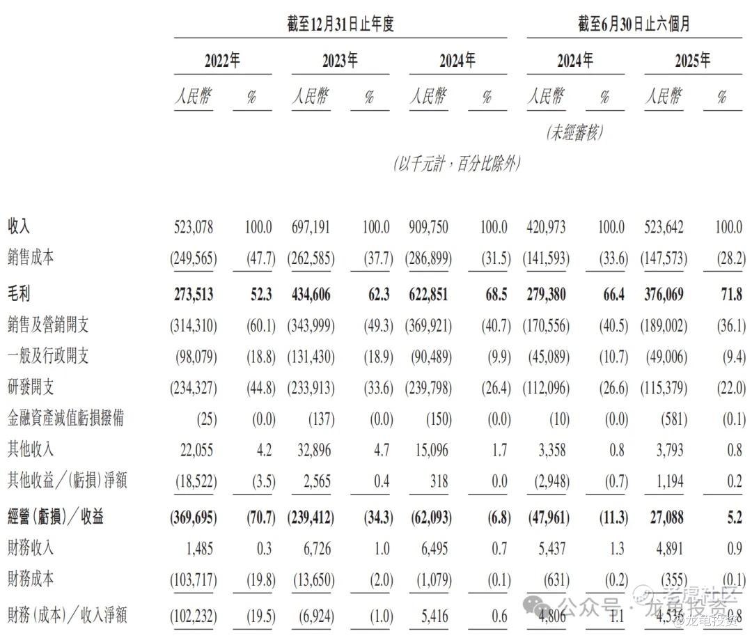 毛利:2022-2024年毛利分别为2.74亿元,4.35亿元和6.23亿元,2024年前六个月毛利2.79亿元,2025年前六个月毛利3.76亿元。