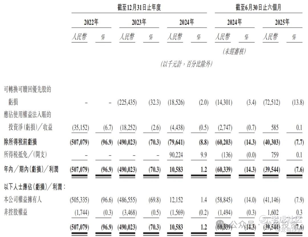 年内亏损/利润:2022年净亏损为5.07亿元,2023年净亏损4.90亿元,2024年净利1058万元,2024年前六个月净亏损6033.9万元,2025年前六个月净亏损3954.4万元。