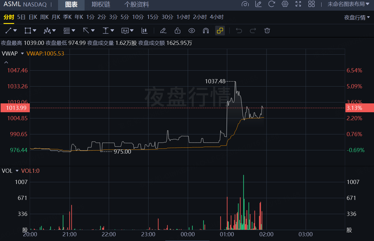 受此影响,阿斯麦老虎证券夜盘股价一度涨超5.5%,带动台积电涨超3%、英伟达涨超1.5%: $阿斯麦(ASML)$ $台积电(TSM)$ $英伟达(NVDA)$