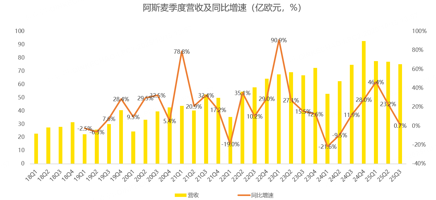 在三季报上,阿斯麦预计2026年营收将不低于2025年,较上一季不确定能否增长明显乐观。