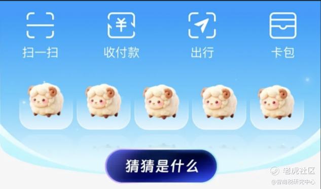 潘哥某天打开支付宝后,在主页看到了五只小绵羊,下面写着“猜猜这是什么?”
