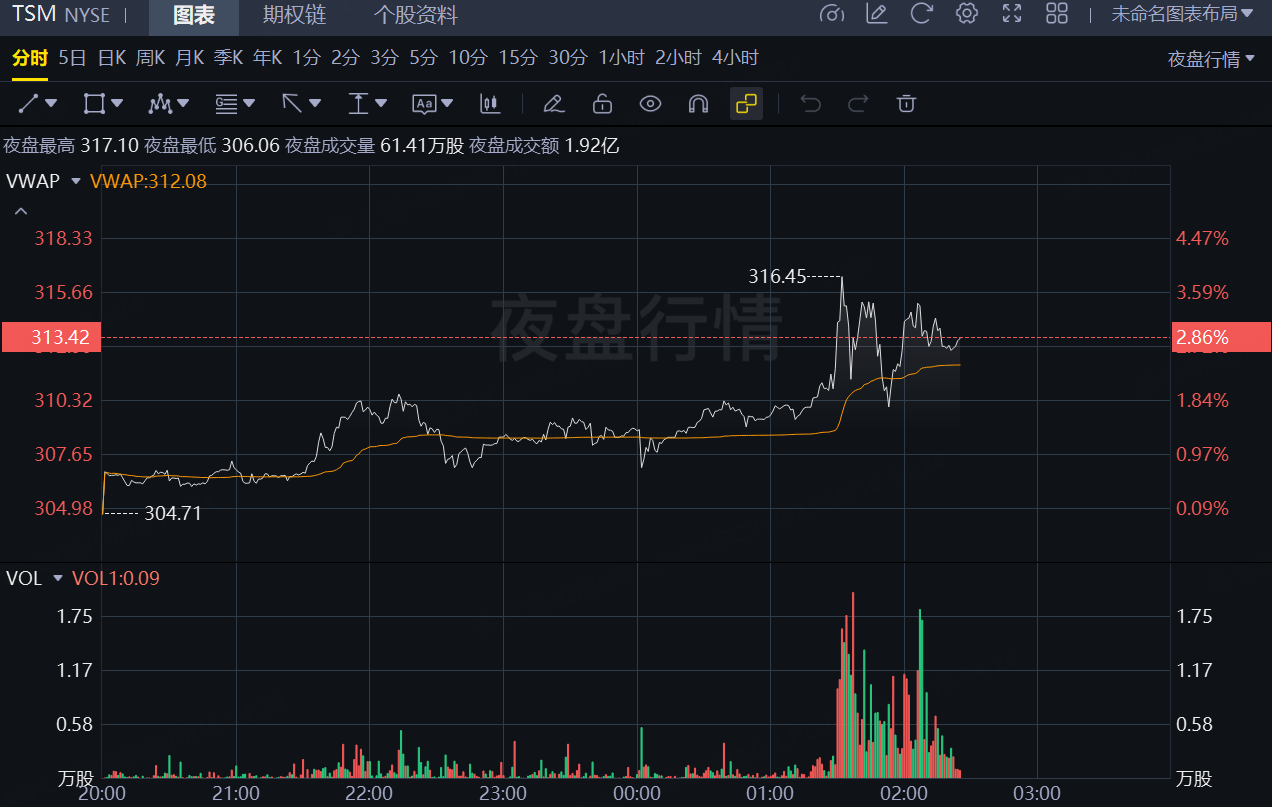 受此影响,台积电老虎证券夜盘股价上涨3%,如果该涨势能够保持,台积电势将创下历史新高: $台积电(TSM)$