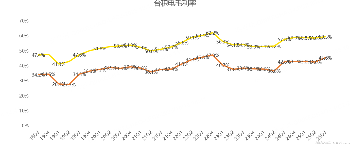 营收超预期并不意外,主要是几天前台积电公布了9月销售额数据。相比营收,更令人惊喜的是三季度毛利率达到59.5%,大幅超过管理层给出的57.5%指引上限。
