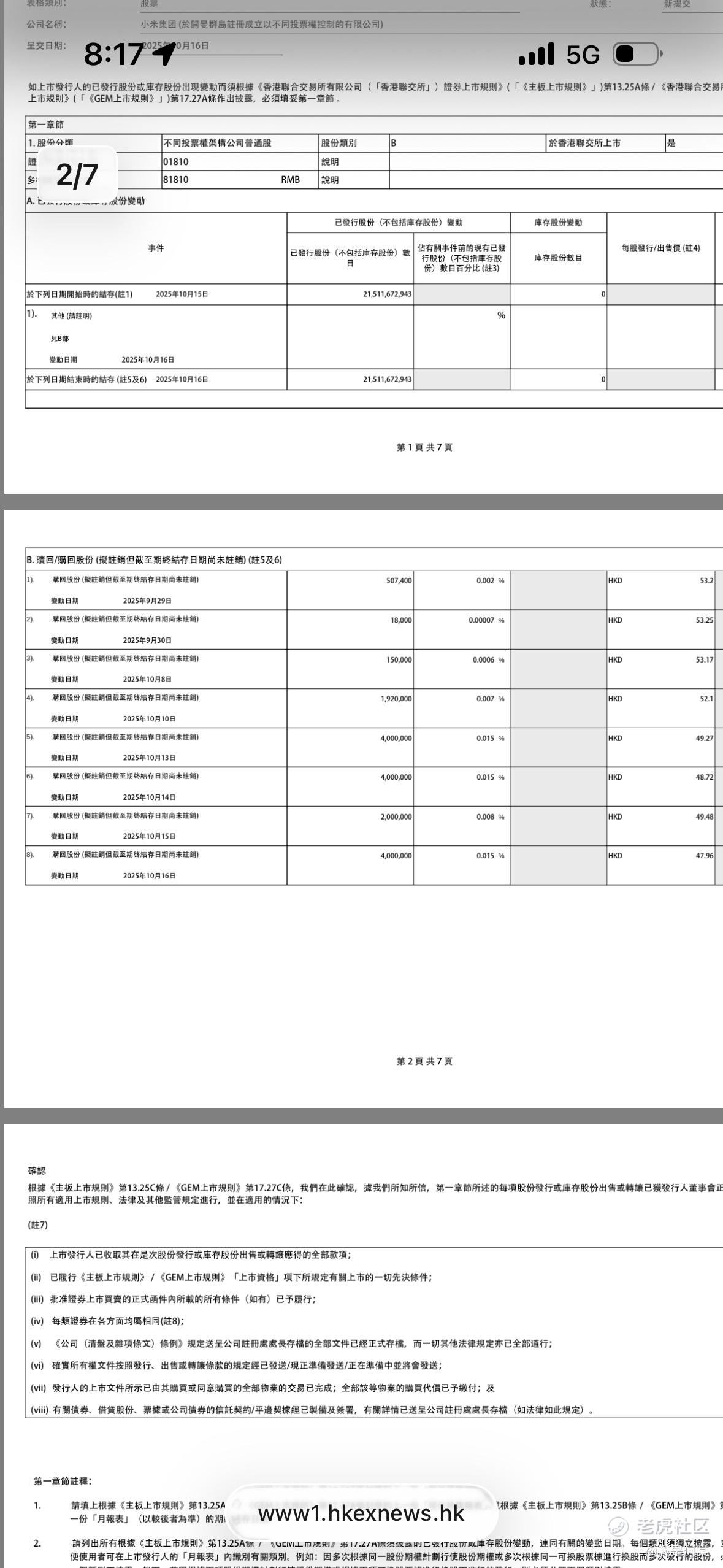 今天好像又回购了1.9亿,好像老虎上没显示,从9月29日截止10月16日累计小米累计回购8.19亿