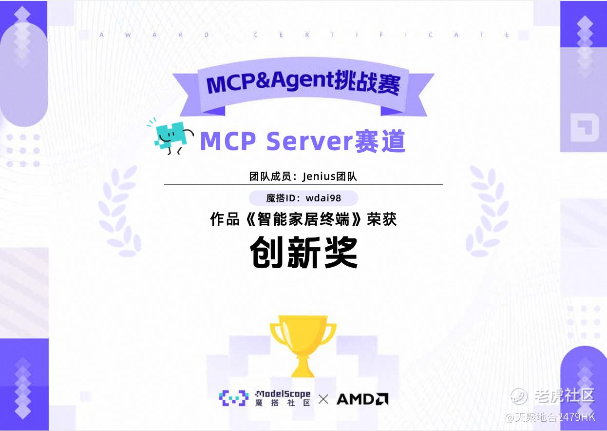 天聚地合「智能家居终端」在MCP&Agent挑战赛荣获创新奖