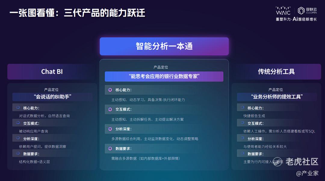 这款研发历时超2年的产品,在本次WAIC大会上由诸葛智能正式发布,定名为金融行业智能业务分析Agent——智能业务分析一本通,其专门面向城商行群体帮助其构建对应的AI能力,进而智能化地完成相关业务的数据分析。
