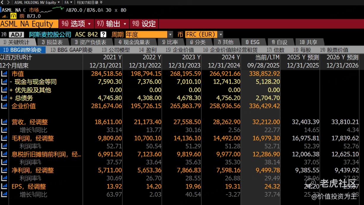 从增速上看,阿斯麦不够诱人,唯一欣慰的就是市盈率没有处于历史高位,加上AI如果持续景气,投资者对阿斯麦2027年的预期会保持乐观。