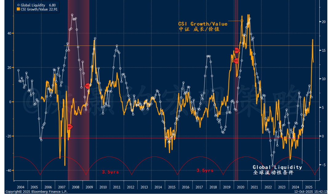 于此同时,我们清晰地观察到成长股相对于价值股的表现已经在过去数月里演绎得淋漓尽致。历史经验表明,当成长股的相对收益达到如此极端高度之时,市场风格的转换就会应声开启,比如2009年的七月和2019年的四季度。当然,2020年全球央行的大规模放水更是让成长股的相对收益达到了历史上前所未有的高度。