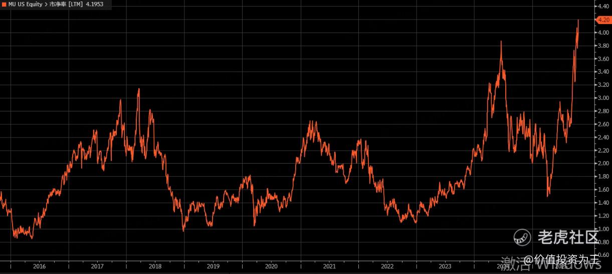 要说唯一的不足,就是股价暴涨之后,美光的市净率估值已经突破历史高位: