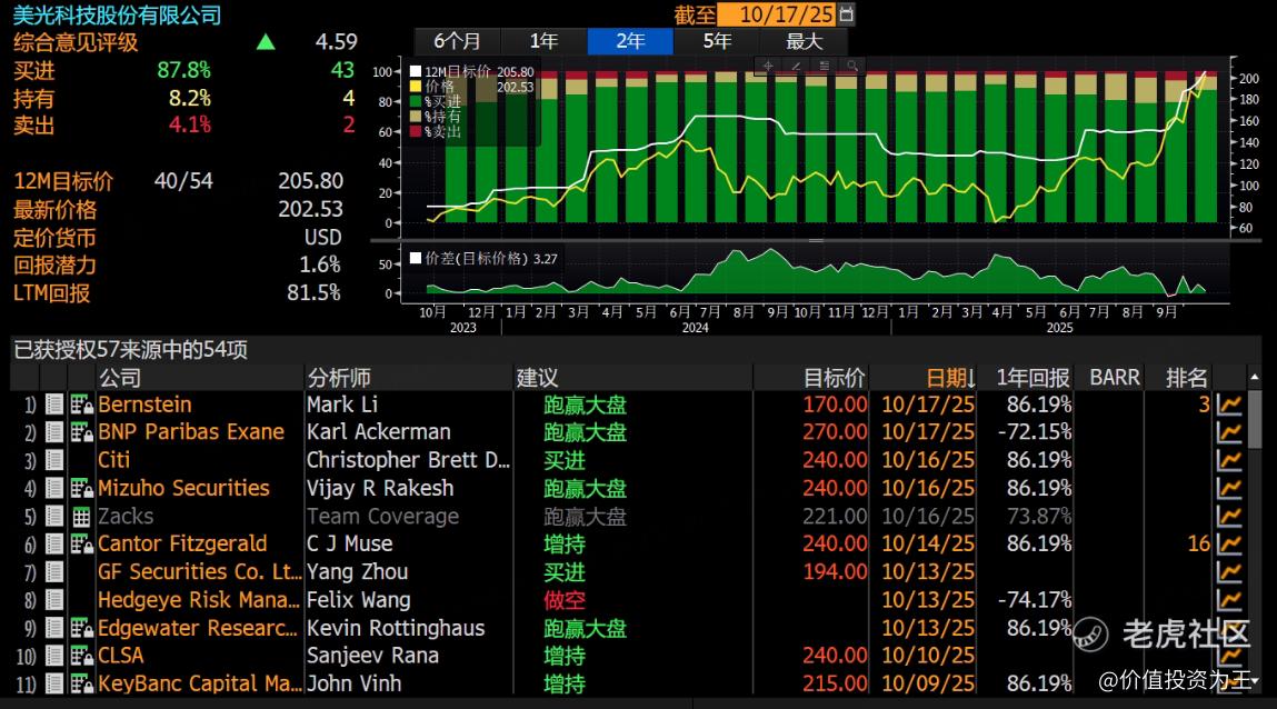 此前,瑞银亦将美光目标价从225美元上调至240美元,较昨夜收盘价仍有18.5%的上涨空间: