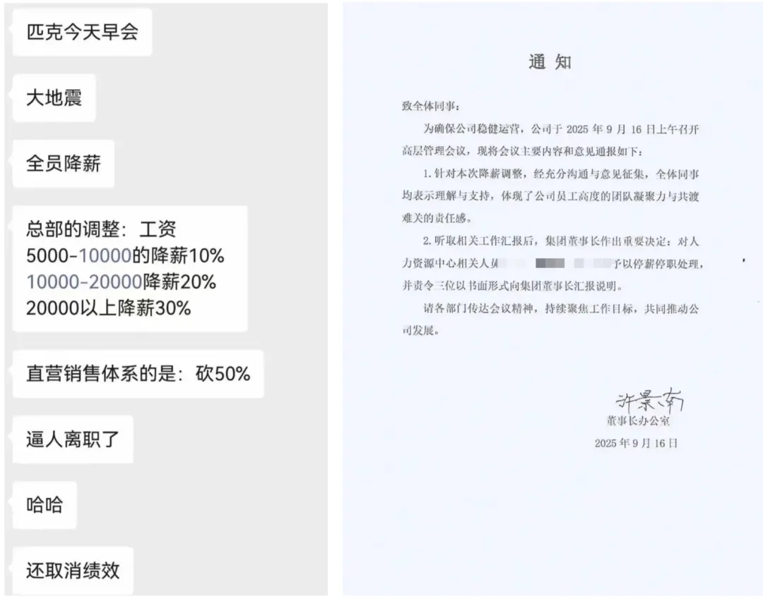九月中旬,知名运动品牌匹克因实行阶梯式降薪引发广泛关注,其最高降幅达50%。这轮降薪事前并无正式文件和充分沟通,只在发薪日前四天的会议上提到。许多员工对此不满,并提交了降薪异议书。