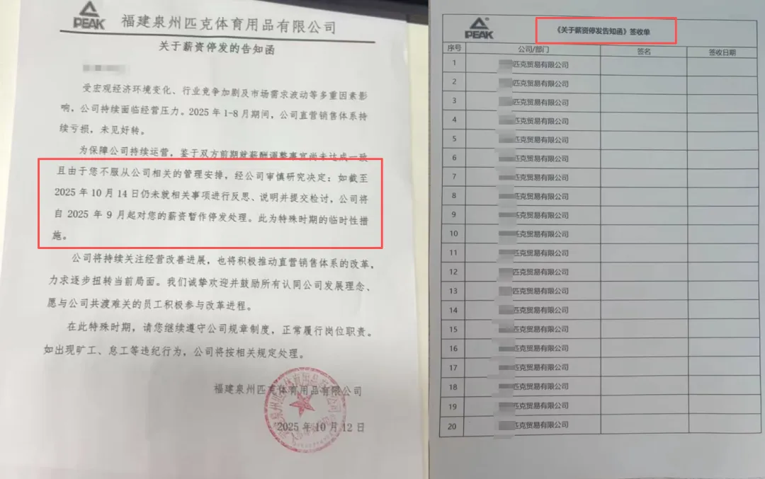 匹克降薪风波升级:拒写检讨员工收到“停薪通知”,多次召开三观培训会