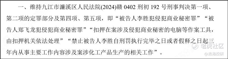 9月16日,公司发布收到《刑事判决书》的公告。根据公告,公司原员工为获取非法利益,违反保密义务,将公司技术对外泄露。根据终审判决,前员工已被定罪量刑。虽然目前未对公司业务造成实质影响,但秘密一旦泄露,便是覆水难收,未来是否会对公司业务产生影响无法预期。