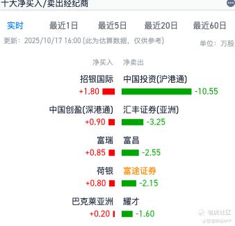 10月17日这第二个反弹交易日的资金动向,提供了最关键的交易盘口证据。数据显示,最大的空头力量毫无悬念地来自内地资金。中国投资(沪港通)净卖出10.55万股,这或许表明原主力认为这里不是历史大底,反弹是他们减仓降成本的机会,而非新一轮行情的起点。