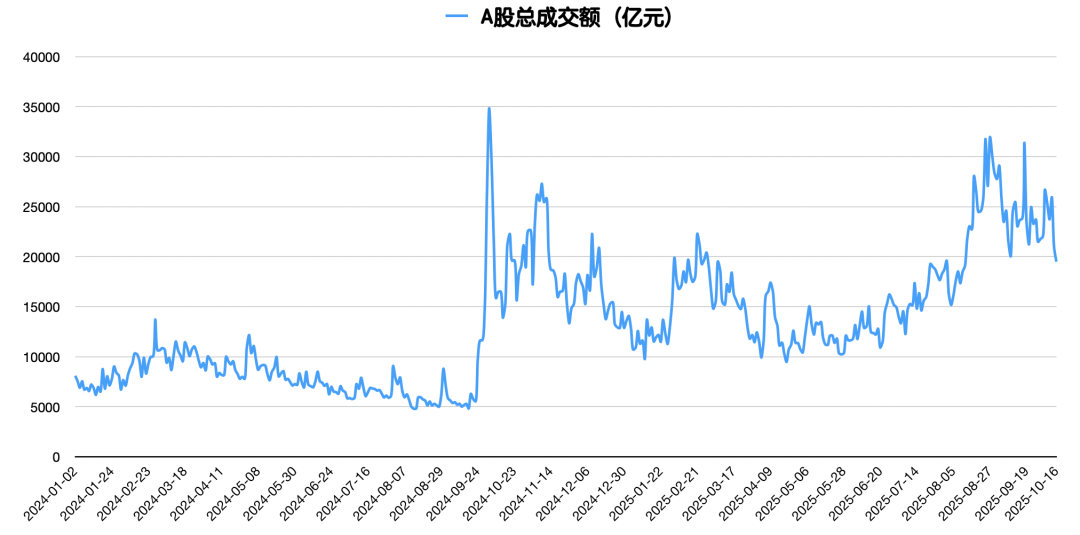 今天比行情自身更值得关注的是成交额的变化。今天A股成交额跌破2万亿,8月13号以来的连续两万亿就此终结。正是在八月中旬持续大幅放量之后的这一个多月时间里,上证指数接连站上3700、3800、3900多个整数关口,创业板从2300多点一口气涨到了3200点。