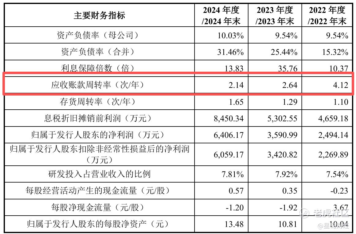 然而,直销模式尤其在面对大客户时,也往往伴随着更长的付款周期,直接或间接导致应收账款快速增加。2022年-2024年,钶锐锶应收账款价值分别为0.73亿元、1.20亿元、1.76亿元,占当期营收比例分别为32.78%、47.08%及55.65%。应收账款周转率从2022年的4.12下滑至2024年的2.14。