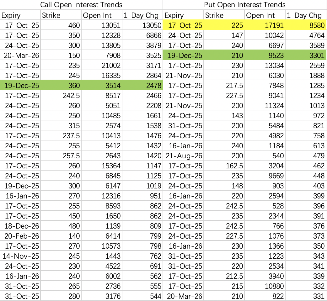 AMD开仓看起来正常,但有个成交额73万的末日看跌 $AMD 20251017 225.0 PUT$