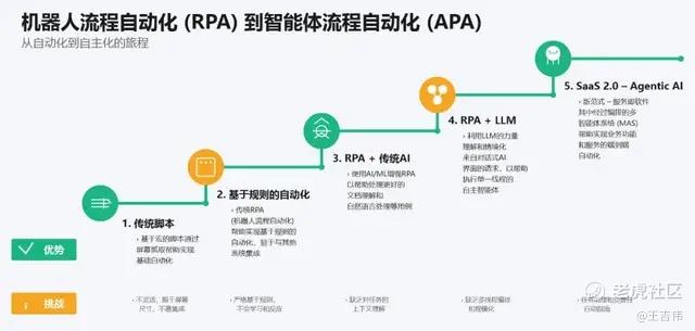 所以当智能体已经在大街小巷被谈论的时候,有些传统企业、大型企业可能还在实施RPA2.0向RPA3.0的跨越,因为它们需要成熟与稳定的技术支撑业务,未经大规模验证的新技术无法适配规模化生产。当然随着传统软件的智能体化,它们最终都能借助RPA Agent或者企业Agent实现Agentic AI对业务流程的赋能。