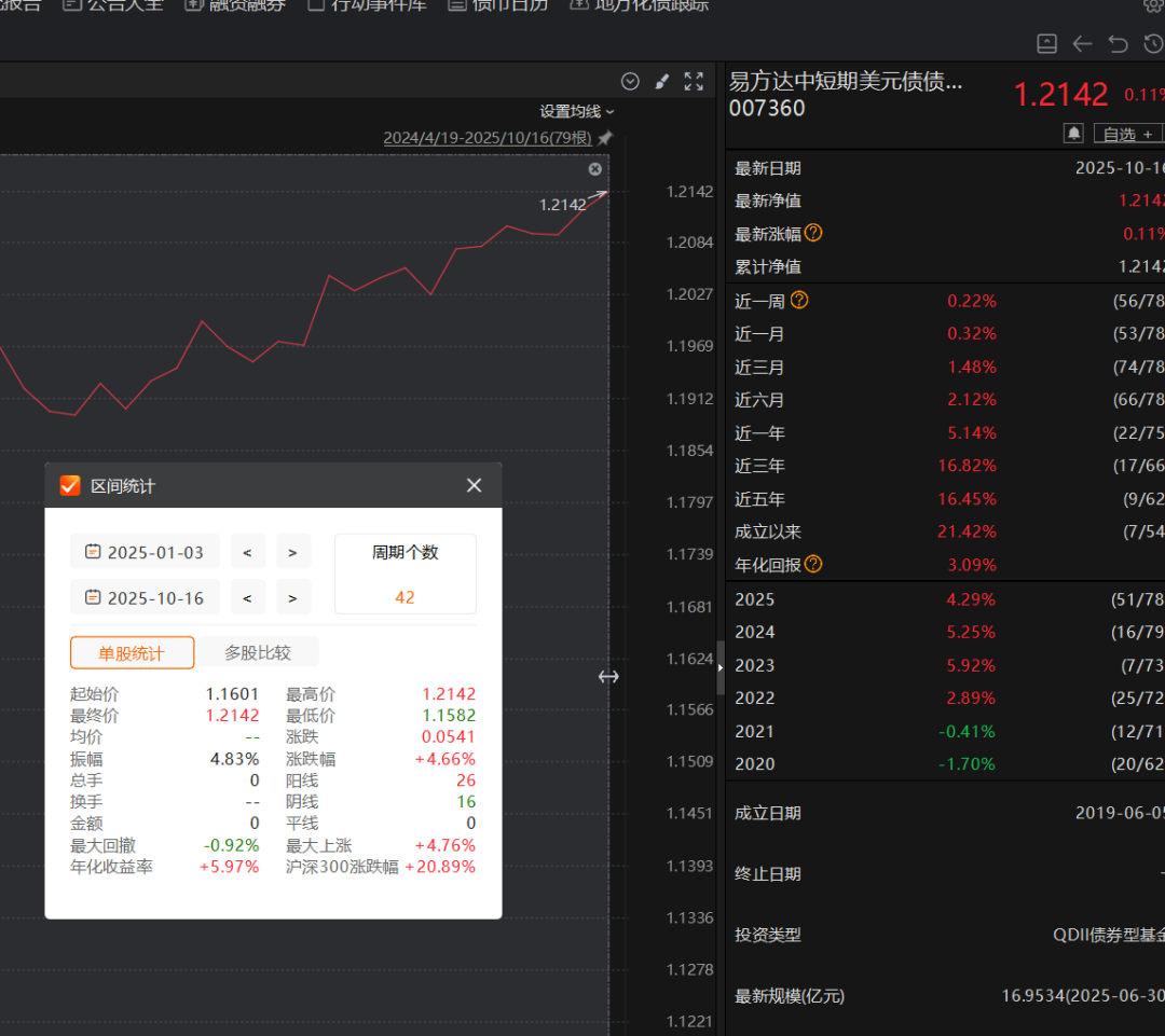 而且大家一定不要把黄金跟美债的逻辑混淆了。美债的波动极小,我们会员内部整理的美债投资品种,不少美债今年整体的收益能达到7%,但是这个7%的收益是几乎每天都有的,且,很少回撤: