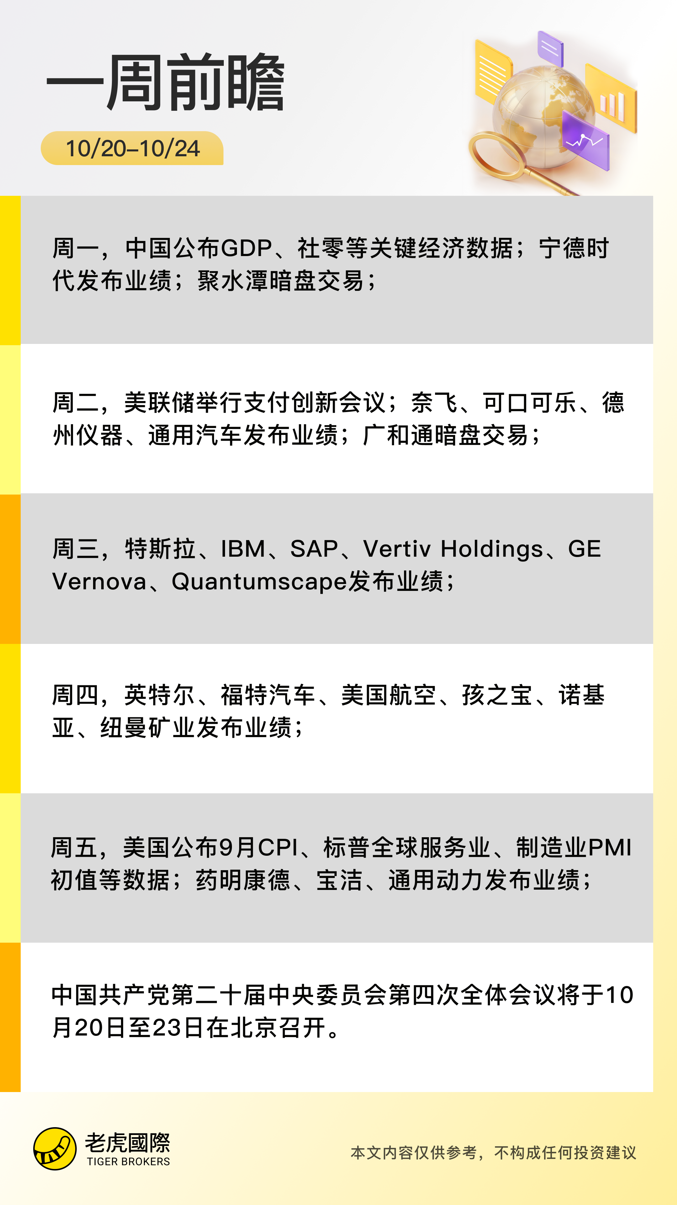 10月20日 - 10月26日当周重磅财经事件一览: