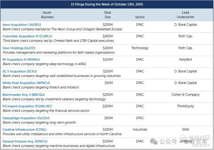 由于政府关门仍未结束,目前本周没有安排任何IPO。不过,更多的SPAC和小型发行人可能会在晚些时候加入。