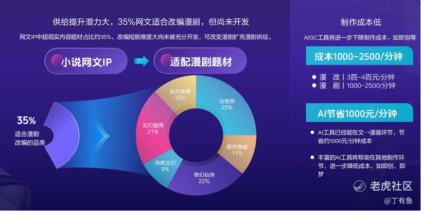 AI的价值不仅体现在创作端,更在视觉化开发中发挥关键作用。以漫剧为例,AI技术可介入剧本、分镜、素材生成、视频剪辑全流程,将单部漫剧的制作周期压缩至一天以内,成本控制在10万至15万元之间。