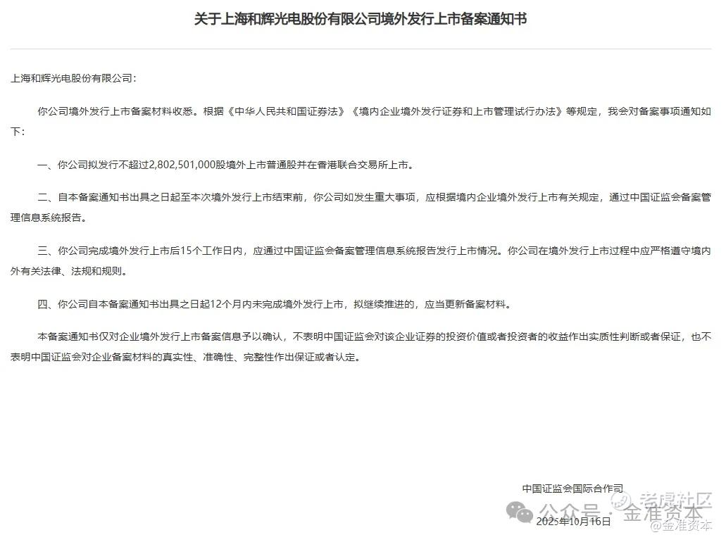 3,关于上海和辉光电股份有限公司境外发行上市备案通知书